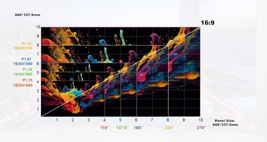 The cabinet size for this LED display is 600*337.5mm, which makes it easy to install and set up wherever you need it.